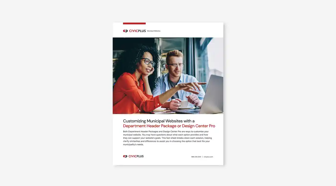 CivicPlus offers two flexible customization options within Municipal Websites: Department Header Packages and Design Center Pro. Each solution is designed to help municipalities tailor their site’s appearance while maintaining the reliability, support, and functionality of the CivicPlus platform.